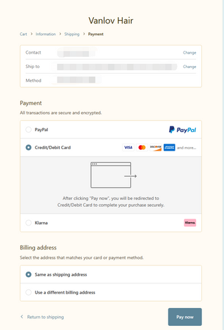we accept klarna payment, this is klarna choice on vanlovhair.com